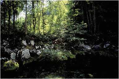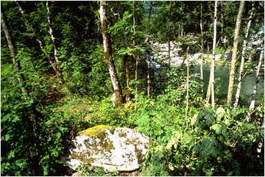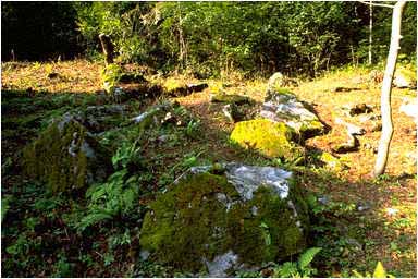 Im Schatten der Bäume entsteht ein weiterer, optimal in die Natur integrierter Sitzplatz mit einem grossen Granittisch. Zwischen Waldbeeren, Nuss- und Kastanienbäumen führt ein kurzer Fussweg hinauf zum romantischen Rustico.